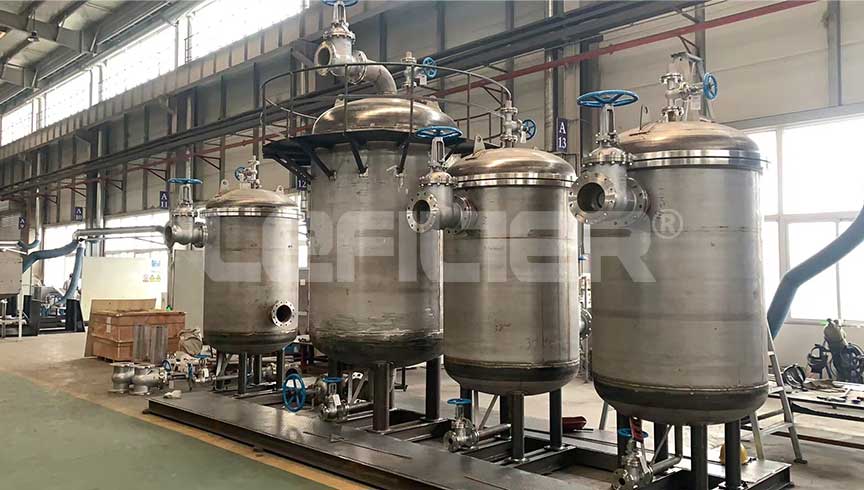 一級采用可清洗的嵌入式斜槽線金屬濾網(wǎng)過濾,過濾精度25?m,對胺液系統(tǒng)中存在的固體顆粒物進行過濾,定期進行反洗,實現(xiàn)了金屬濾芯的再生。二級采用大容量活性炭與多孔活性濾料結(jié)合的深層濾床,特別適合胺液中有機物類的吸附。三級采用超精細(xì)袋式過濾器或不銹鋼金屬濾芯,過濾精度達(dá)5?m,對剩余微量的懸浮狀固體進行截留,是一款三級撬裝設(shè)備,可根據(jù)客戶要求增加或減少過濾單元,也可實現(xiàn)一備一用。