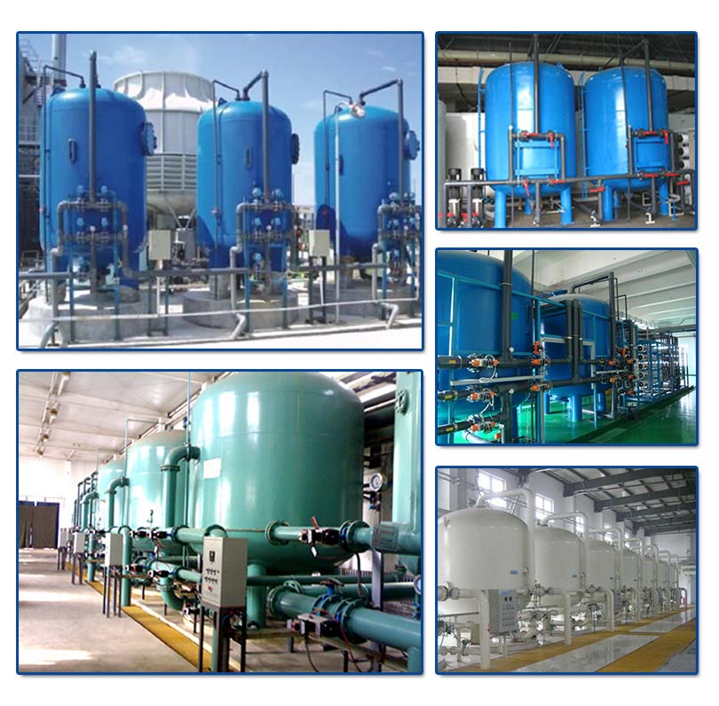 活性炭過濾器上部設有進水裝置,下部設有排水裝置,運行時,水經上部進入,流經活性炭過濾層,從底部流出。利用活性炭的表面有大量的羥基等官能團,可以對各種性質的物質進行化學吸附,除去水體中異味、有機物、膠體、鐵及余氯等,同時降低水體的濁度、色度,使水質清澈透明,減少對后續系統(反滲透、超濾、離子交換器)的污染。