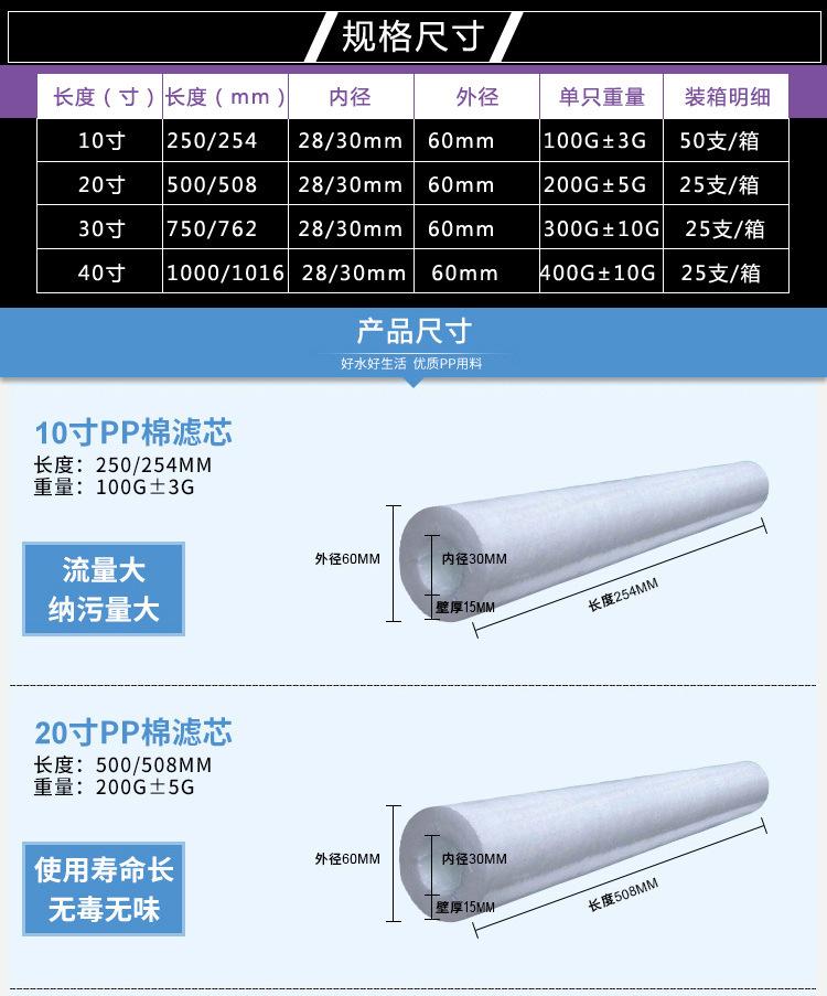 PP熔噴濾芯規(guī)格尺寸: