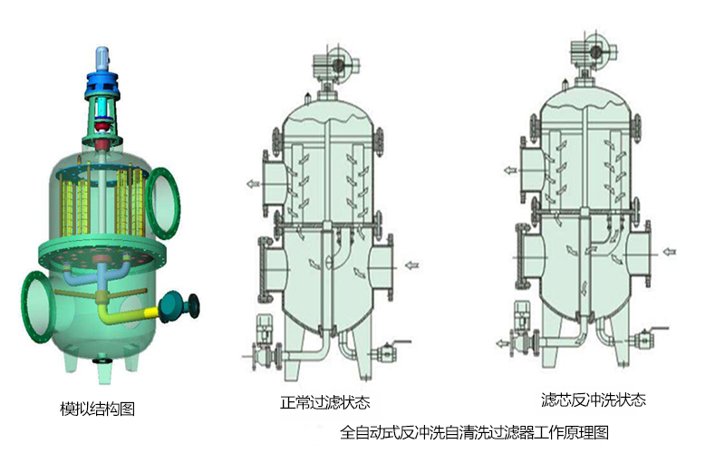 2.自清洗過濾器廣泛實用、簡便、可靠; 安裝方便:可直接安裝在官道上,無需建過濾間,特別適合于各種工藝條件下的現場使用;